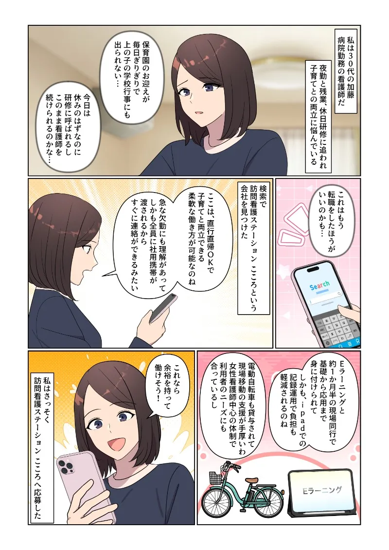主人公「私はさっそく、訪問看護ステーション こころへ応募した」